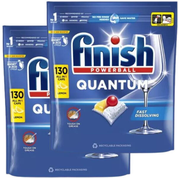 Finish INGYENES SZÁLLÍTÁS - Finish Powerball Quantum All in 1 2x130 db kiszerelésű mosogatógép-kapszula, lemon