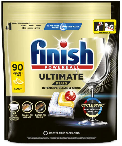 A Finish Ultimate Plus All in 1 Lemon mosogatógép kapszula (EAN: 5908252011025) egy 90 darabos csomagolású termék, amely kiemelkedő tisztítóhatást és ragyogó fényt biztosít edényeinek már az első mosogatástól kezdve.