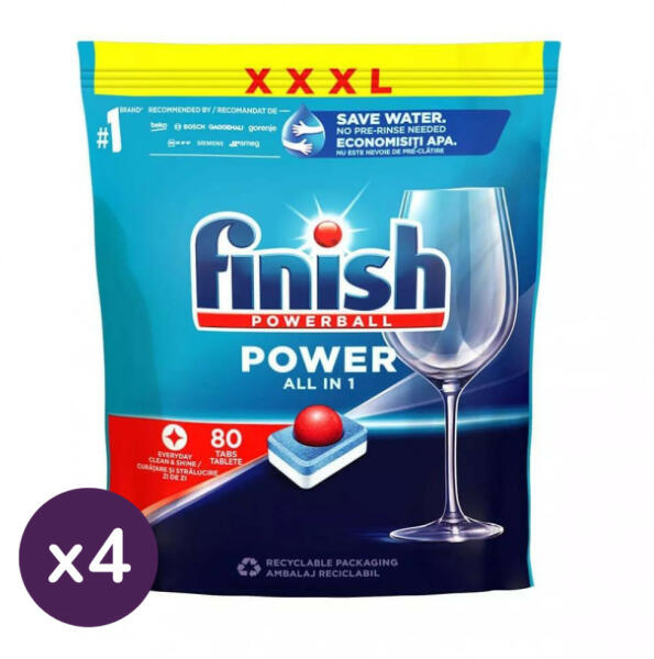 Finish Power All in 1 mosogatógép-tabletta (80 db) A Finish Power All in 1 mosogatógép-tabletta bármivel megbirkózik, ami az útjába kerül. A Powerball hatékony formulája még a rászáradt ételmaradékot is eltávolítja, akár már az első mosogatás után ragyogóan tisztává varázsolja edényeit.