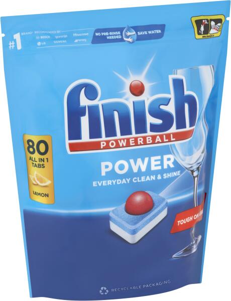 A Finish Powerball Power All in 1 a megoldás az edények mosogatásához. A Powerball hatékonysága már az első mosogatás után biztosítja a mindennapi csillogást és tisztaságot az edények számára. A Finish Powerball lemossa a maradékot a csodálatos ragyogás érdekében, még kemény víz esetén is.