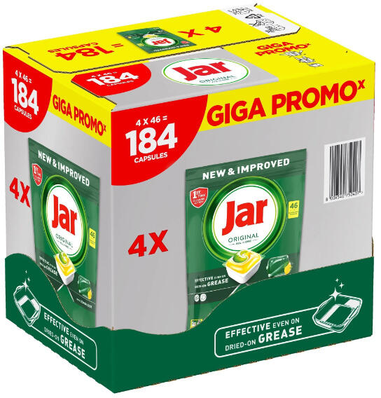 A Jar Platinum Plus all-in-one mosogatókapszula a megújulás erejével tisztítja meg edényeit, és a Jar legkiválóbb tisztító hatásával még a lerakódó vízkövet is segít eltávolítani, hogy helyreállítsa az edények eredeti csillogását. A Jar Platinum Plus előmosogató formulája elvégzi Ön helyett az előmosogatást. A Jar Platinum Plus használatával kihagyhatja az előmosogatást, így kevesebb vízfelhasználás révén spórolhat, ráadásul a környezetet is óvja. A Jar egyetlen kapszulában ötvözi a folyékony és a por állagú mosogatószerek erejét. A rendkívül gyorsan oldódó párnácska szinte azonnal kifejti tisztító hatását, így rövid programok esetén is hatékonyan elvégzi a munkát. Ráadásul rendkívül egyszerűen használható! Kicsomagolnia sem kell, csak helyezze a kapszulát a mosogatógép mosogatószer-adagolójába.