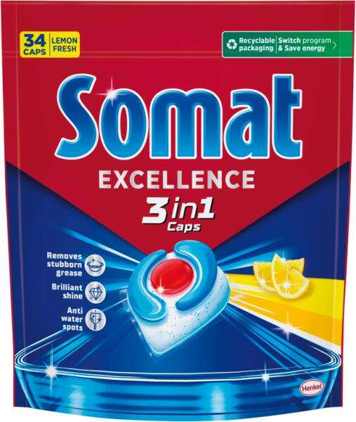 Somat Excellence Lemon Fresh gépi mosogatószer kapszula 34 db 615, 4 g