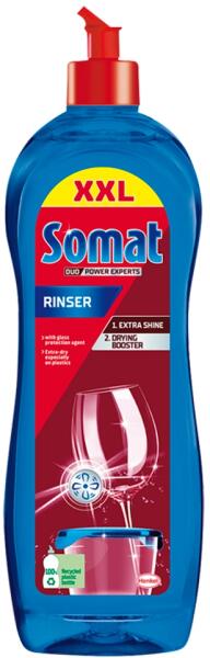 A Somat Rinser ragyogó, fényes fényt kölcsönöz edényeinek. A Somat Rinser lágyítja a vizet, így az egyenletesen folyik le az edényekről. Ez azt jelenti, hogy az edények gyorsabban száradnak, és nem maradnak rajtuk vízcseppek vagy vízkőlerakódások. Fényessé és megszáradt vízcseppektől mentessé teszi az edényeket. A tökéletes eredmény érdekében használja a Somat Rinsert a hagyományos Somat termékekkel (tabletták, gél vagy Somat Classic por) és Somat sóval együtt. A Somat Rinser mosogatógép öblítőszerének jellemzői: megakadályozza a szennyeződés lerakódását eltávolítja a szennyeződés maradványait üvegáru védelem ragyogó fényt hoz létreragyogó fényt hoz létre Somat Rinser mosogatógép öblítő használata: Húzza fel az adagolókupakot, és öntse az öblítőszert a mosogatógép öblítőszer-adagolójába. Somat Rinser összetétele: 5-15% nem ionos felületaktív anyagok, illatanyagok (limonén), tartósítószerek (metil-klór-izotiazolinon, metil-izotiazolinon) Biztonsági figyelmeztetés GHS07 - irritáló